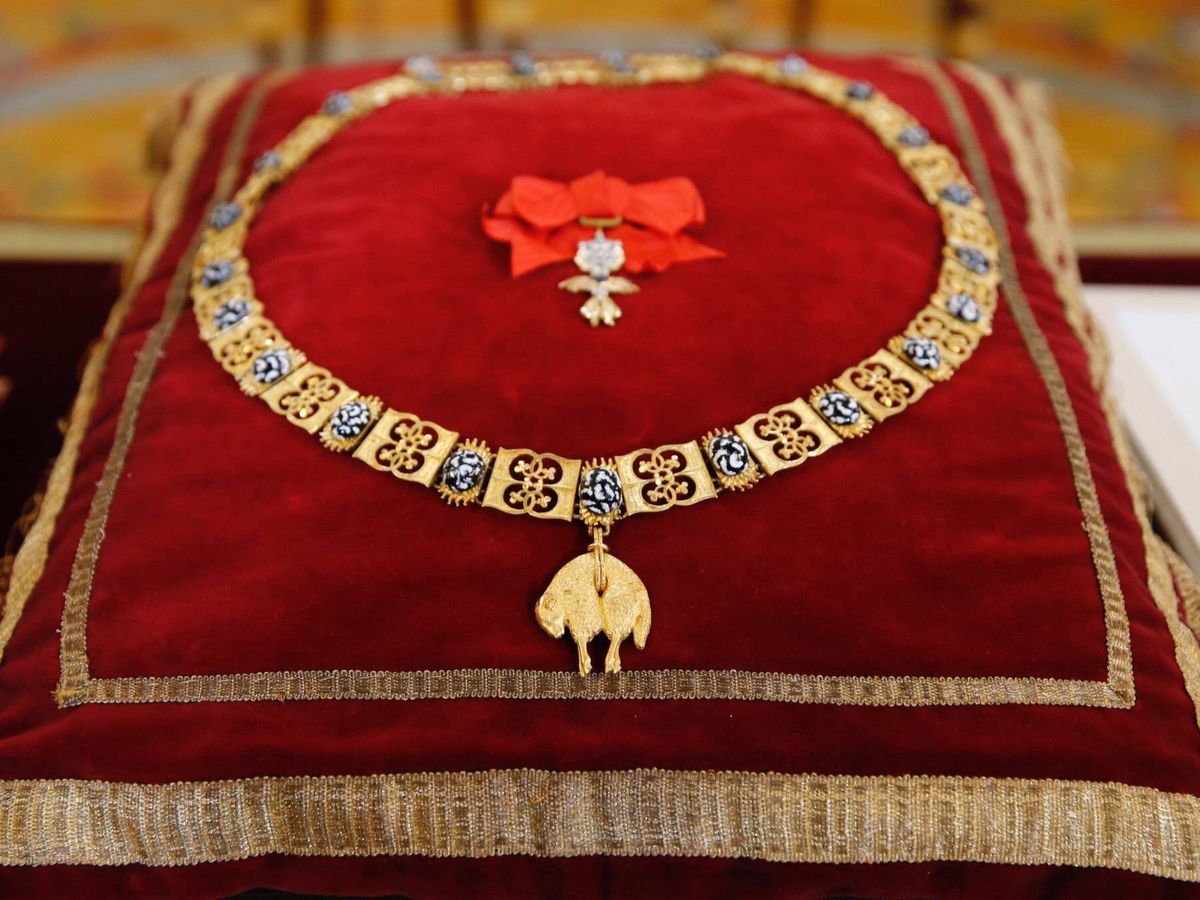 Simboliza el honor, la valentía y la lealtad. Consiste en un collar de oro con un vellón de carnero que tiene su origen en la mitología griega simbolizando al vellocino de oro del mito de Jasón y los argonautas entrelazando la audacia y la nobleza. Es Carlos V (I de España) quien en la ciudad de Brujas (donde el carnero es su símbolo) vincula a la corona el Toisón celebrando en 1520 en Barcelona el capítulo para la Península Ibérica y el respectivo nombramiento del Rey de España como el gran Maestre de la Orden, declarándolo también como una distinción hereditaria y el tratamiento de Su Excelencia o Excelentísimo/a Señor/a siempre y cuando su titular no posea otro título de mayor rango. Actualmente lo otorga por la rama española (familia Borbón) el Rey de España y por la rama austríaca, Carlos (familia Habsburgo) sin título nobiliario.
